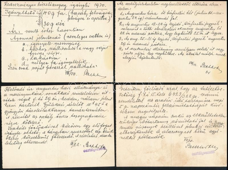 1930 Bp., M. kir. Pénzügyminisztérium XIII./C. oszt. (Állami Térképező Intézet) 1. Topográfiai osztályának 4 db bélyegzővel ellátott, fejléces levelezőlapja, Joláthy Ferenc százados részére címezve, megírva