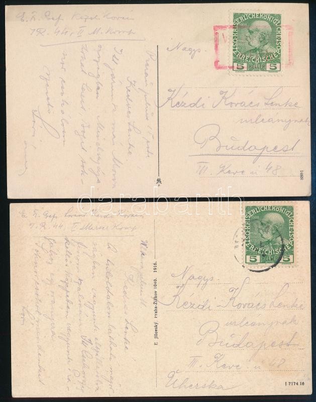 cca 1916 Kézdi-Kovács Lóránt (1897-1916) festőművész növendék 2 db I. világháborús tábori postai képeslapja testvérének, Kézdi-Kovács Lenkének címezve. Kézdi-Kovács Lóránt autográf aláírásával. Kézdi-Kovács Lóránt fiatalon, 19 évesen 1916-ban hunyt el a háborúban, becses gyűjtői ritkaság!