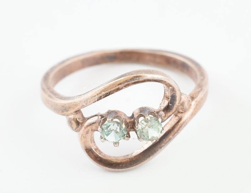 Leírás: Ezüst (Ag) gyűrű, aranyozott, két kővel, jelzett. 2,12g, m: 53