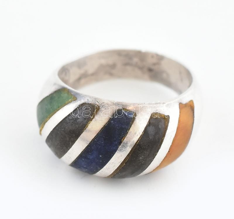 Leírás: Ezüst (Ag) gyűrű, zománc berakásokkal, jelzett 7,49 g m: 52