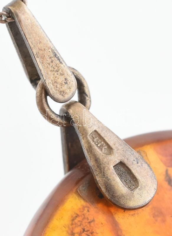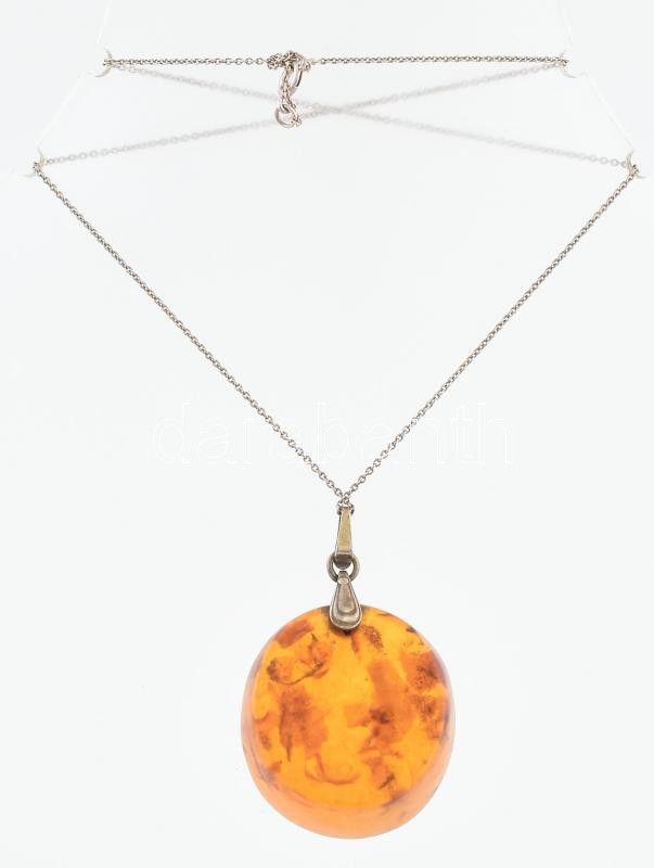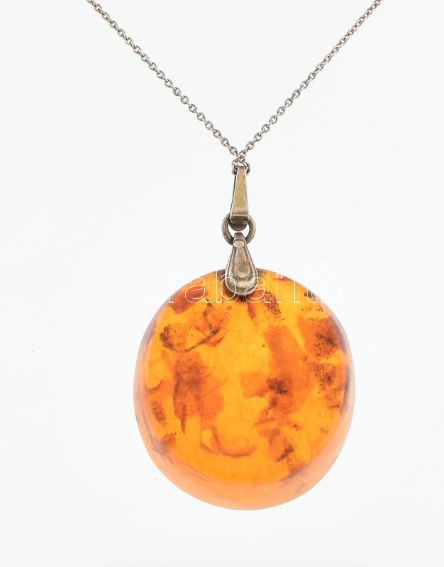 Leírás: Ezüst (Ag) lánc nagy méretű borostyán medállal d: 35 mm