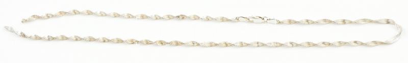 Leírás: Ezüst(Ag) csavart nyaklánc, szakadással, jelzett, h: 42 cm, nettó: 5,5 g