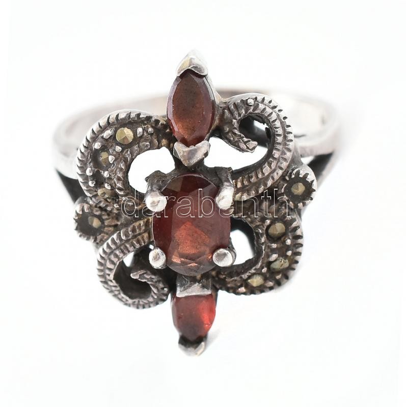 Leírás: Ezüst(Ag) piros köves gyűrű, jelzett, méret: 57, bruttó: 6,6 g