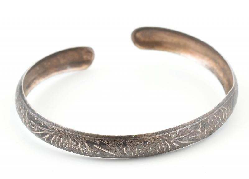 Ezüst(Ag) virágmintás karperec, jelzett, kis deformációval, 5,5×5 cm, ... https://www.darabanth.com/hu/426-Gyorsarveres/426.0/Nemesfem-disztargyak-ekszerek-dragakovek/Nemesfem-disztargyak-ekszerek-dragakovek~500033/EzustAg-viragmintas-karperec-jelzett-kis-deformacioval-5-5C3975-cm-netto-5-g~II2716081