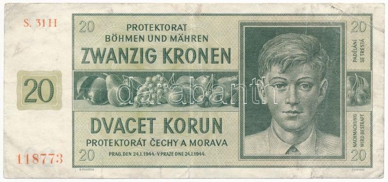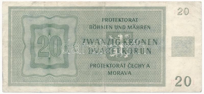 Német Harmadik Birodalom / Cseh-Morva Protektorátus 1944. 20K T:III German Third Reich / Protectorate of Bohemia and Moravia 1944. 20 Korun C:F Krause P#9