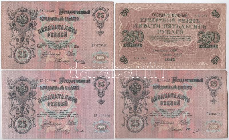 Leírás: Orosz Birodalom 1912-1917. (1909) 25R (3x) Szign.: Shipov + 1917. 250R T:III szakadás
