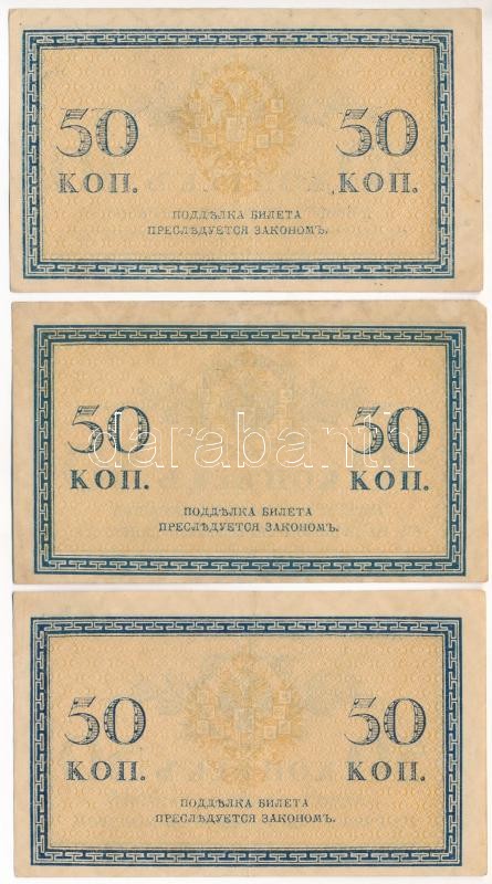 Russian Empire 1915. 50 Kopec... https://www.darabanth.com/hu/426-Gyorsarveres/426.0/Numizmatika/Kulfoldi-bankjegyek~2000014/Orosz-Birodalom-1915-50k-3x-TII-III-Russian-Empire-1915-50-Kopecks-3x-CXF-F-Krause-P2331~II2720524