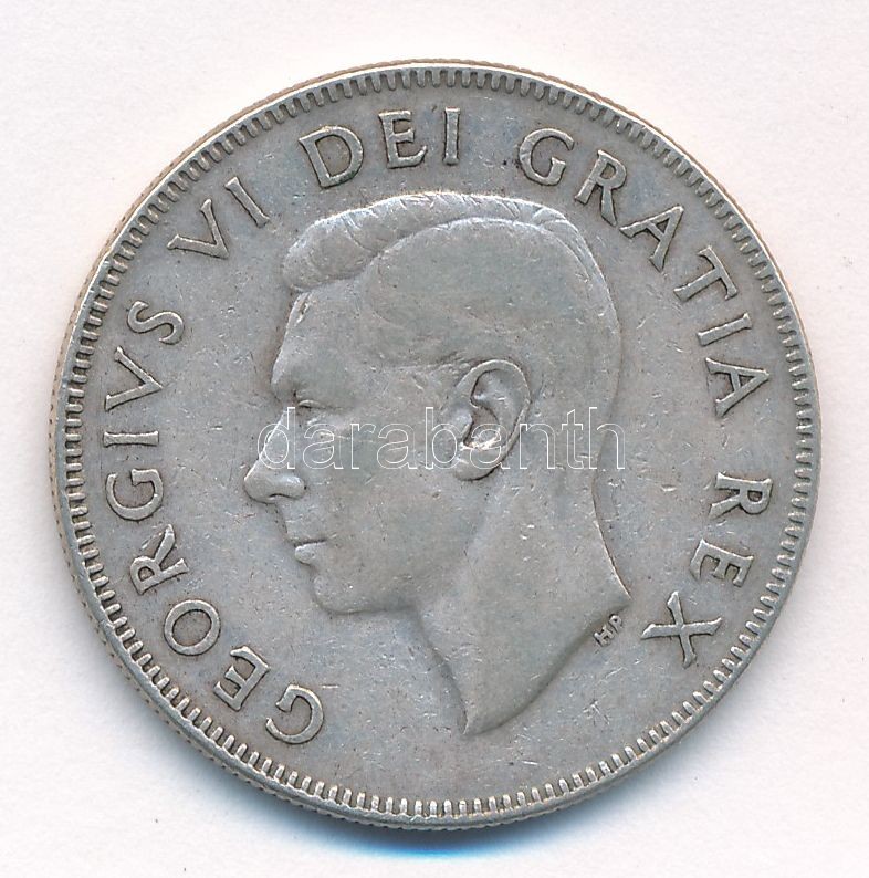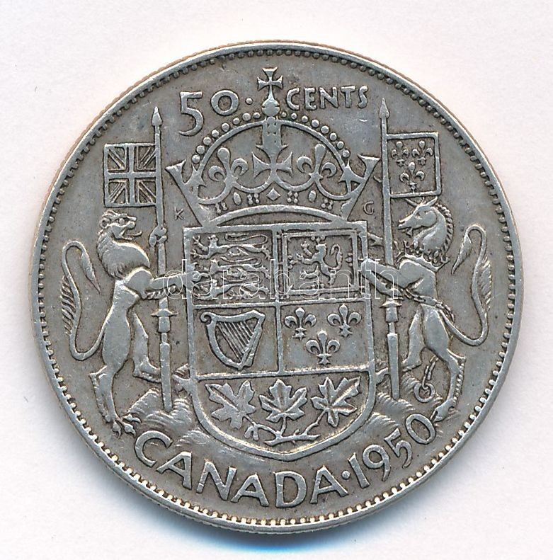 Kanada 1950. 50c Ag "VI. György", dátum nullájában nincsenek vonalak T:2