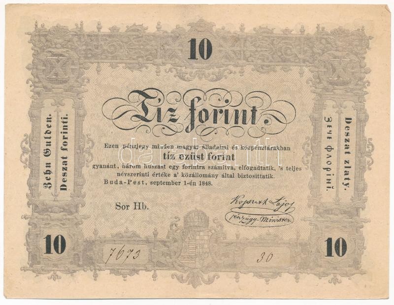Leírás: 1848. 10Ft "Kossuth bankó" "Hb 7673 30" T:II-