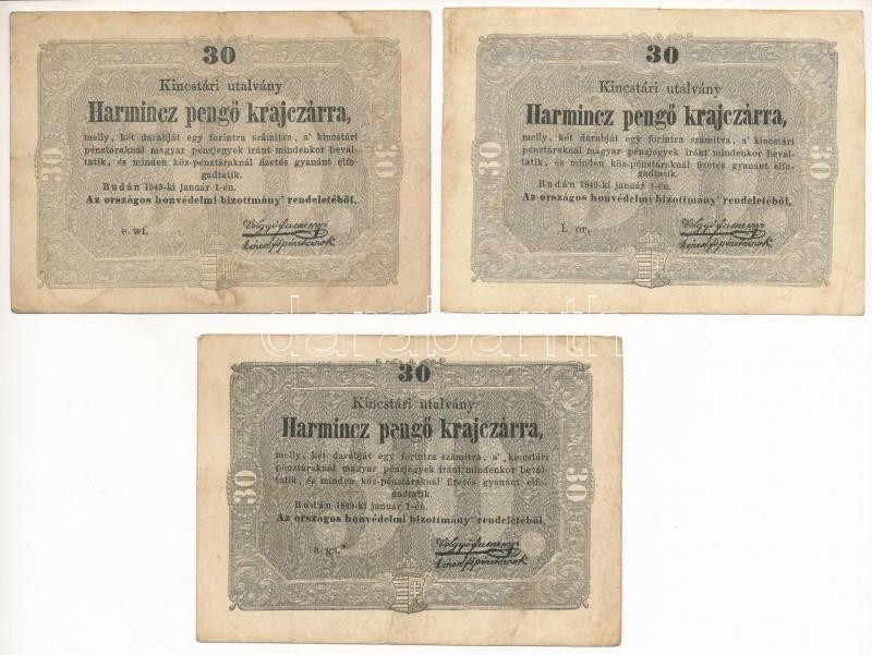 Leírás: 1849. 30kr "Kossuth bankó" (3x) T:III,III-