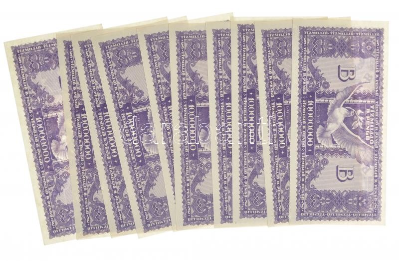 1946. 10.000.000BP (11x) T:I-,II hajtatlanok Adamo P38 https://www.darabanth.com/hu/426-Gyorsarveres/426.0/Numizmatika/Magyar-bankjegyek~2000007/1946-10000000BP-11x-TI-II-hajtatlanok-Adamo-P38~II2719803