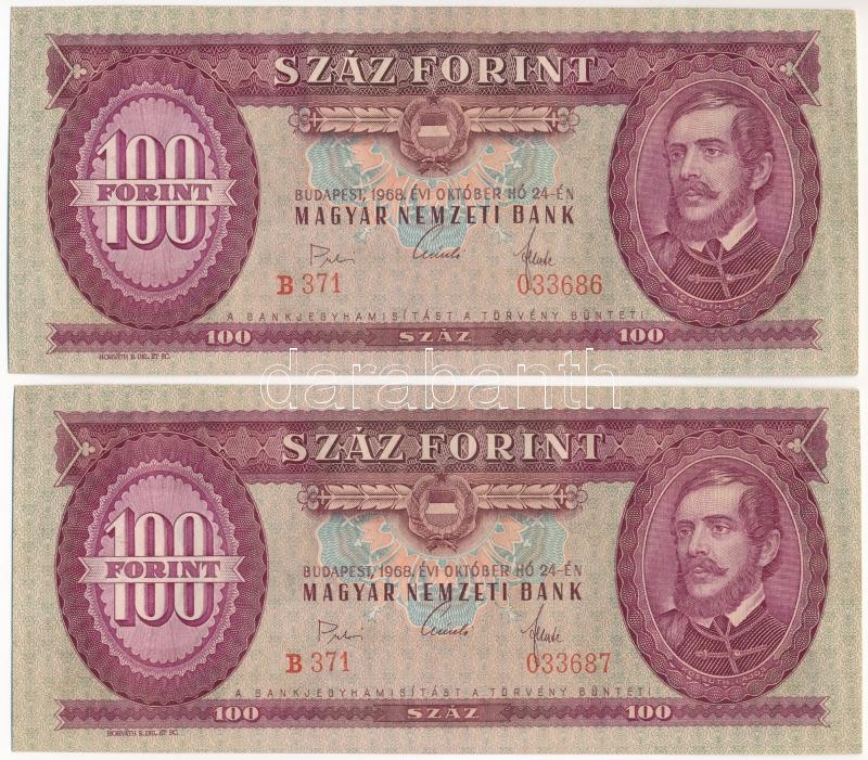 Leírás: 1968. 100Ft (2x) "B 371 033686 - B 371 033687" sorszámkövetők T:I- Adamo F32