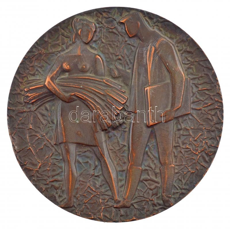 Leírás: ~1970. Mesterségeket ábrázoló egyoldalas bronz szocialista emlékérem (79mm) T:2