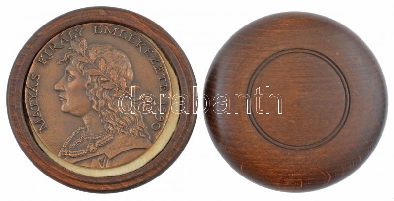 Leírás: Győrfi Lajos (1960-) 1990. "Mátyás király emlékezete" egyoldalas bronz emlékplakett fa dísztokban (100mm) T:1