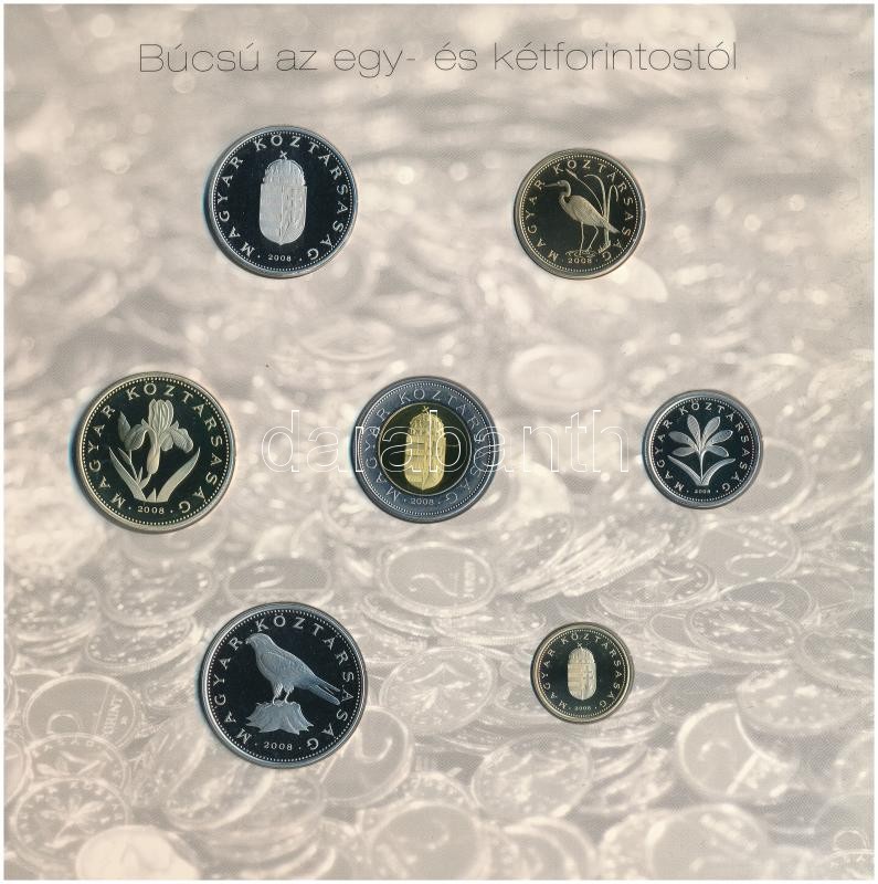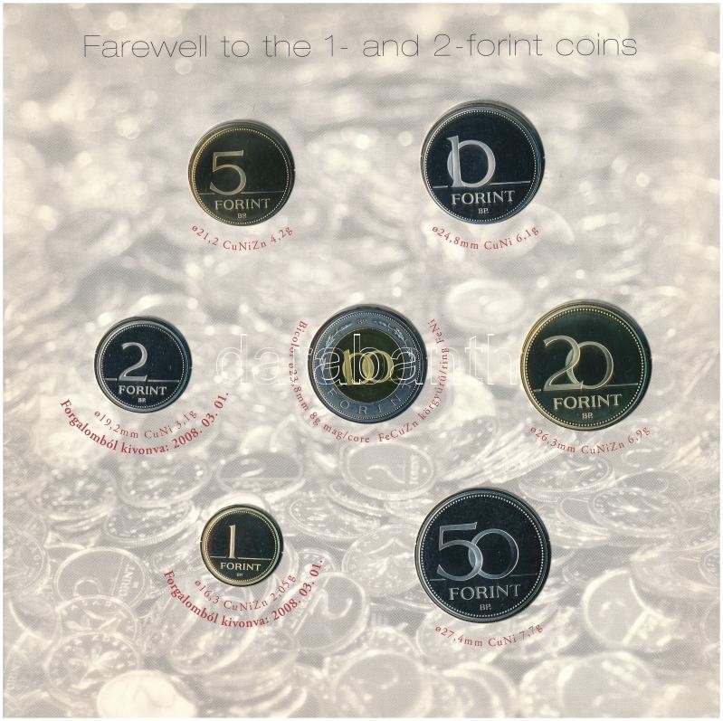 Leírás: 2008. 1Ft-100Ft (7xklf) "Búcsú az egy- és kétforintostól" forgalmi sor szettben T:PP kis patina