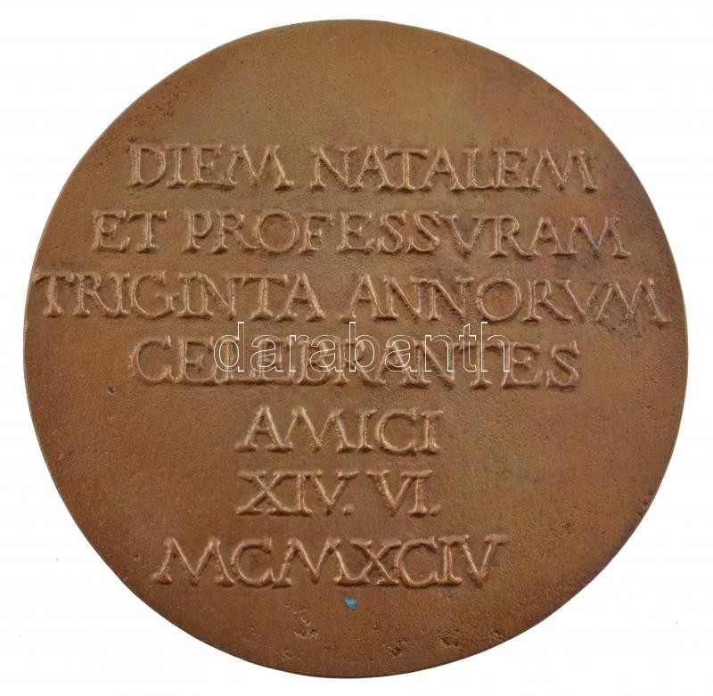 Csíkszentmihályi Róbert (1940-2021) 1994. "BÉLAE FLERKÓ SEPTVAGENARII / DIEM NATALEM - ET PROFESSVRAM - TRIGINTA ANNORVM - CELEBRANTES - AMICI - XIV. VI. - MCMXCIV" kétoldalas öntött bronz emlékérem (69mm) T:2 patina, előoldalán ráragadt papír, kis ph