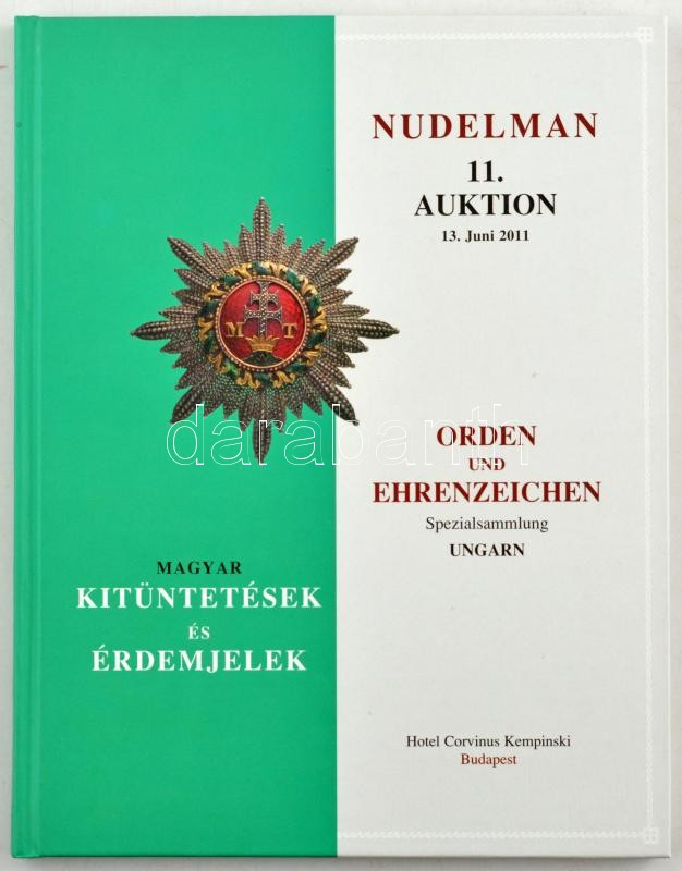 Nudelman László: 11. Auktion - Magyar kitüntetések és érdemjelek. Hotel Corvinus Kempinski Budapest, 2011. Használt, de nagyon jó állapotú kötet, a borítón kis szennyeződés, néhány lapon apró folt.