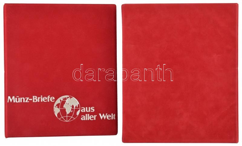 Leírás: "Münz Briefe aus aller Welt" piros, plüssborítású, négygyűrűs album, 30db kettes osztású berakólappal, szép állapotban
