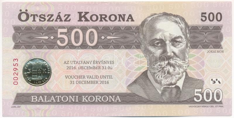 Leírás: 2012. 500 Balatoni Korona "Jókai Mór", "002953" sorszámmal T:I-