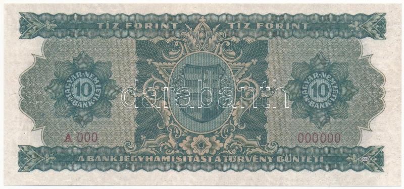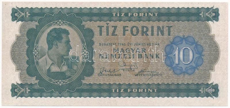Leírás: 1946. 10Ft "A 000 000000" sorszámmal modern másolat , vízjeles papíron, "COPY" jelzéssel T:I
