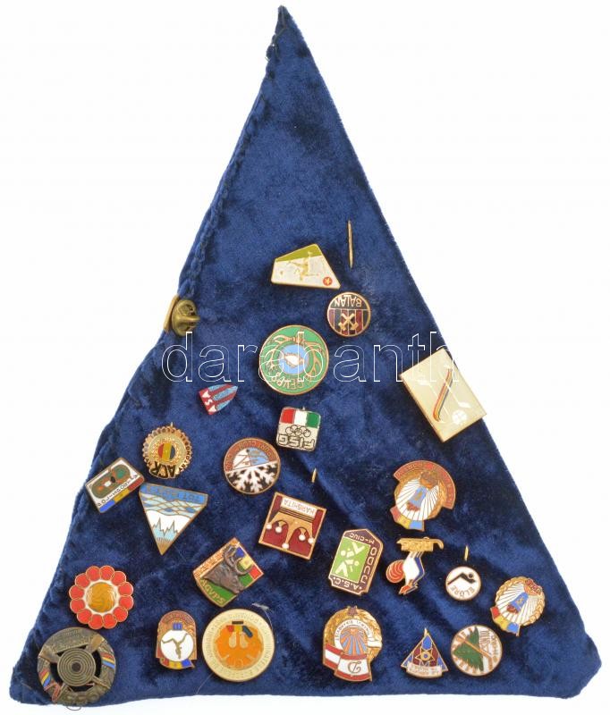 25db-os magyar és külföldi, főleg sportjelvény-tétel, közte Románia 1955. "Sportlövészeti Európa Bajnokság, Bukarest" részben zománcozott fém jelvény (tű hiányzik) + Szovjetunió 1981. "Dinamo Kijev Szovjetunió Bajnoka" festett fém jelvény, illetve Csíkszereda, Balánbányai Bányász, Tanarul Dinamovist (Dinamo Bukarest), UEFA, Újpesti Dózsa, stb. T:1-2 25pcs Hungarian and foreign, mostly sport badge lot, within Romania 1955. "European Sports Shooting Championship, Bucharest" partially enamelled metal badge (pin is missing) + Soviet Union 1981. "Dynamo Kiev Champion of the USSR" painted metal badge, and Miercurea Ciuc, Minerul Balan, Tanarul Dinamovist (Dinamo Bucharest), UEFA, Budapest Dozsa, etc. C:UNC-XF