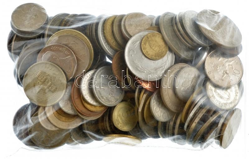 Vegyes, magyar és külföldi érmetétel ~1kg-os súlyban, közte több egzotikus ország T:vegyes Mixed, Hungarian and foreign coin lot with several egzotic countries (~1kg) C:mixed