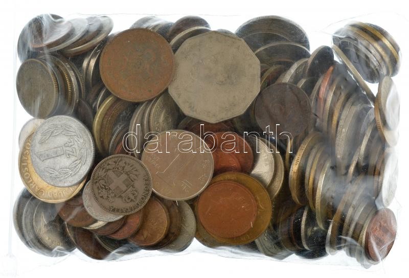 Vegyes, magyar és külföldi érmetétel ~1kg-os súlyban, közte több egzotikus ország T:vegyes Mixed, Hungarian and foreign coin lot with several egzotic countries (~1kg) C:mixed
