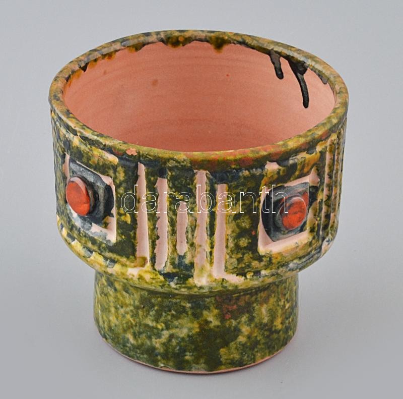 Leírás: Fórizsné Sárai Erzsébet: Díszkaspó. Mázas kerámia. Minimális mázlepattanással. m:12 cm