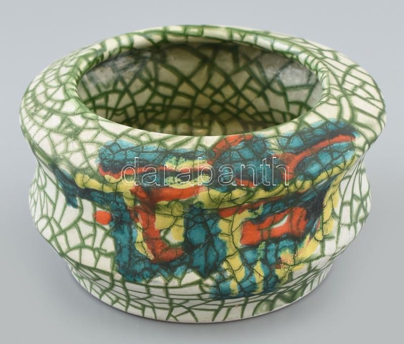 Leírás: Mihály Béla kerámia kínáló repesztett mázzal. Jelzett, hibátlan d: 15 cm
