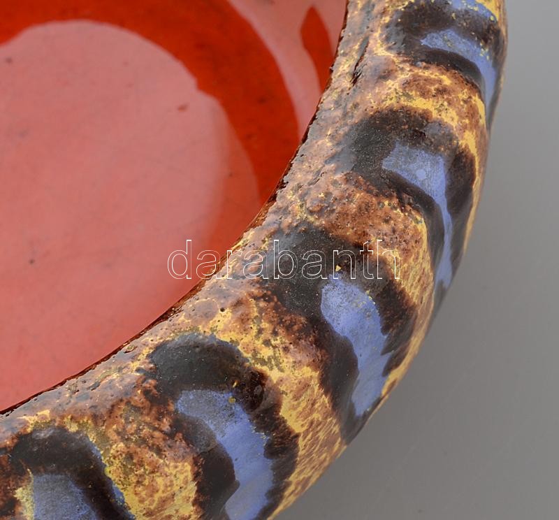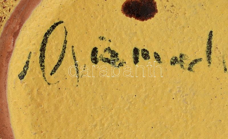 Leírás: Pesthidegkúti tál. Tervező: Csizmadia Margit (1925-1991). Színes mázakkal festett kerámia, hibátlan. Jelzett: Csizmadia Margit d: 26 cm