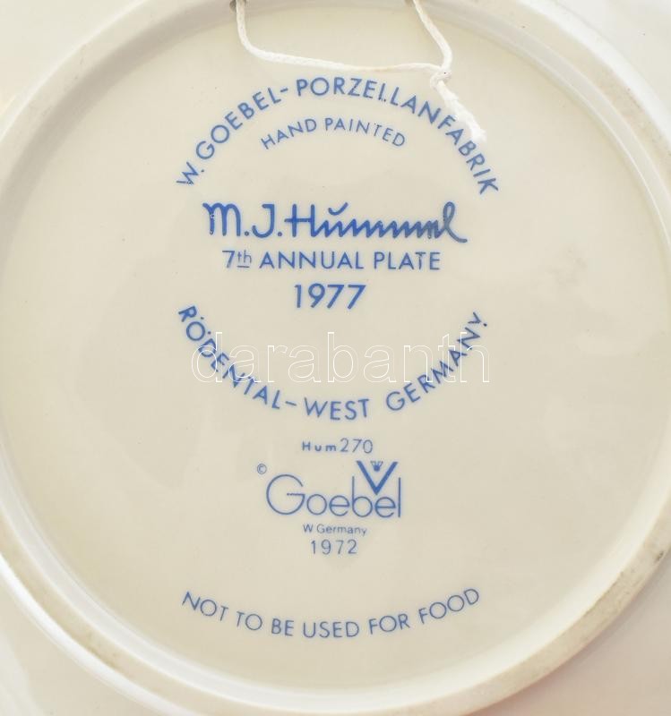 1977 Hummel dísz tányér, jelzett, kopásnyomokkal, d: 19 cm https://www.darabanth.com/hu/426-Gyorsarveres/426.0/Porcelan-keramia-uveg/Porcelan~500006/1977-Hummel-disz-tanyer-jelzett-kopasnyomokkal-d-19-cm~II2716714