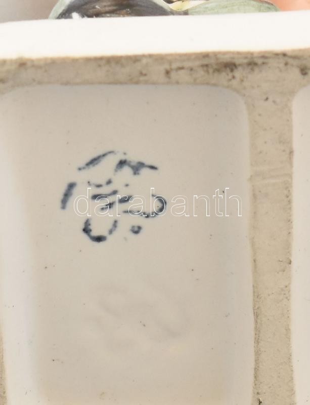 Leírás: Hummel: Esernyős figura, kézzel festett fajansz, jelzett, kopásnyomokkal, mázrepedésekkel, sérült, ragasztott. m:13cm