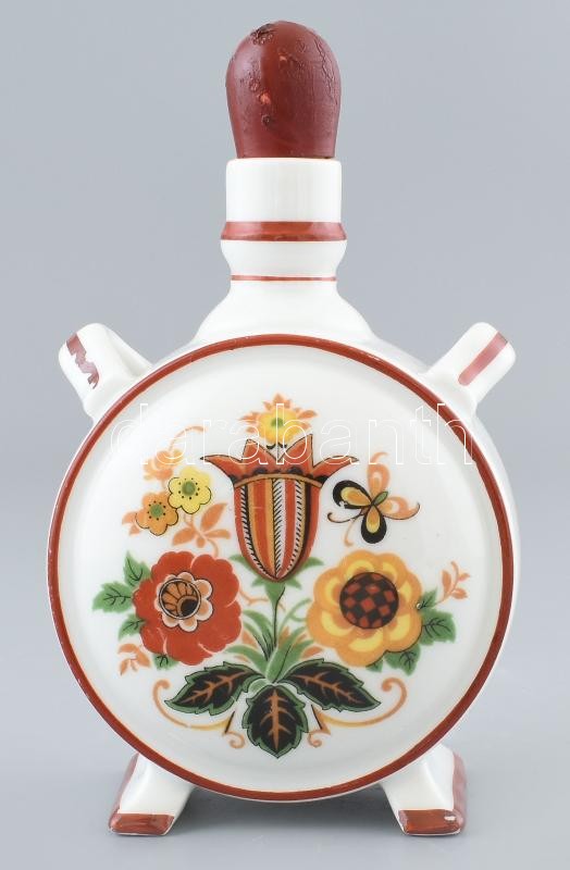 Leírás: Zsolnay nép motívumos porcelán kulacs, matricás, jelzett, kopásnyomokkal, m: 13 cm