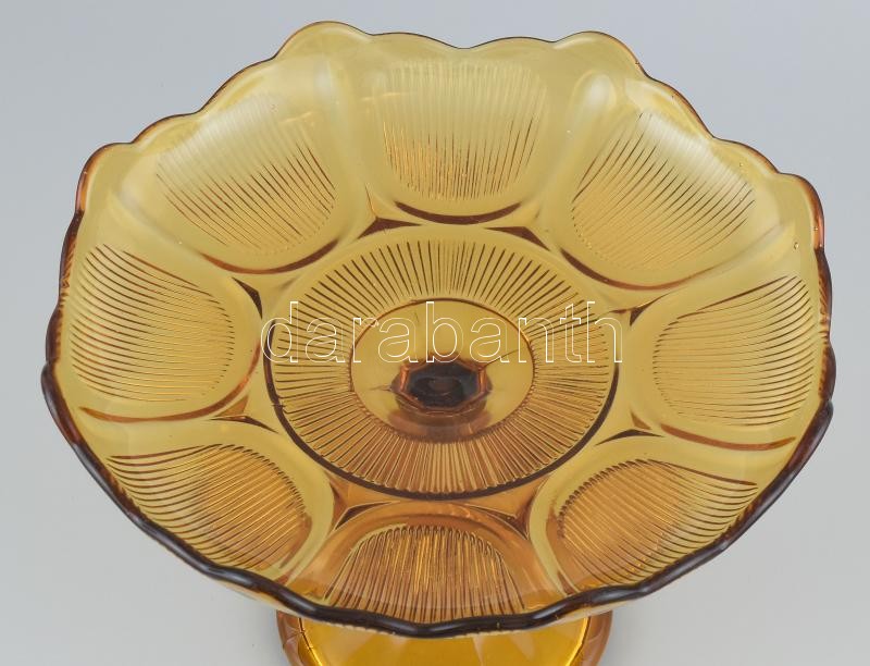 Leírás: Borostyán üveg kínáló, kis kopásokkal, m: 15,5cm