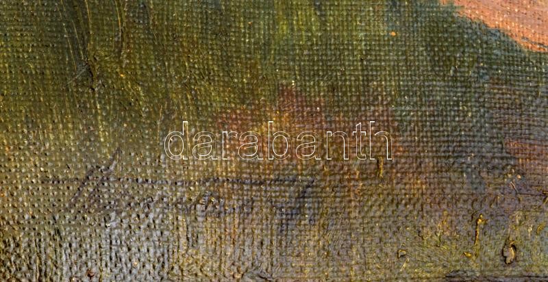 Leírás: Olvashatatlan (Hamvas?) jelzéssel: Tabáni látkép, háttérben a Gellért-heggyel. Olaj, karton. Dekoratív, sérült fakeretben. 33x43 cm