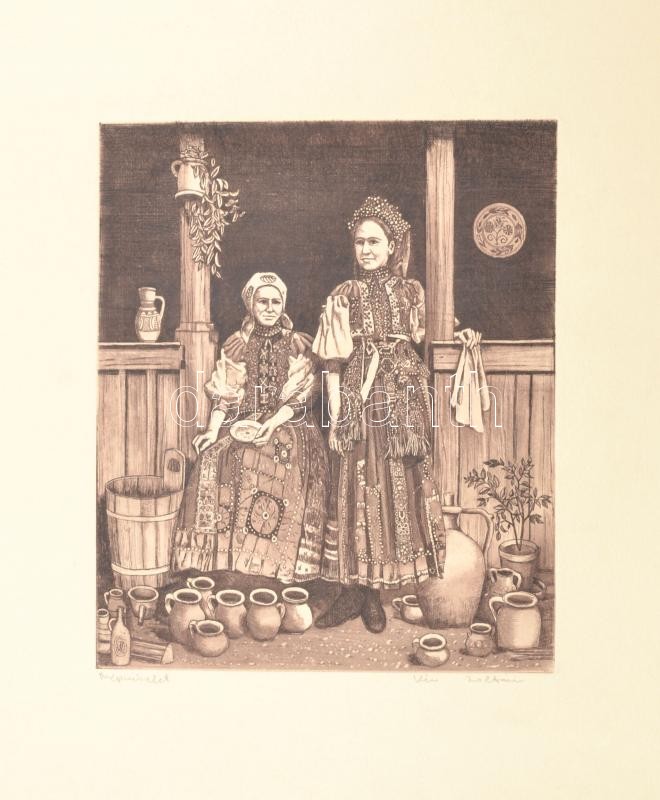 Leírás: Kiss Zoltán: Népviselet, rézkarc, papír, jelzett. 18x21 cm Feltekerve