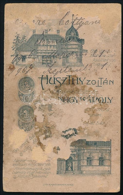 Leírás: 1907 Gyerekportré, keményhátú fotó Huszthy Zoltán nagykárolyi műterméből, hátoldalon a műterem képével, sérült, 10,5×6,5 cm