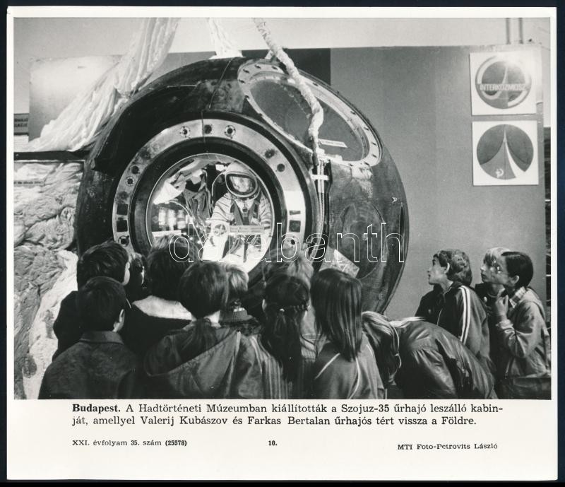 A Hadtörténeti Múzeumban kiállították a Szojuz-35 űrhajó leszálló kabinját, amellyel Valerij Kubaszov és Farkas Bertalan visszatért a Földre, MTI sajtófotó, 21×24 cm