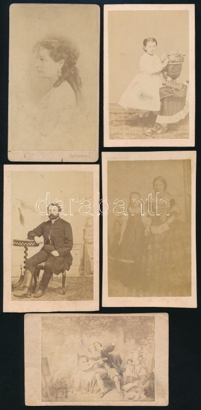 Leírás: cca 1865 5 db keményhátú fotó és fénynyomat, 10,5×6,5 cm