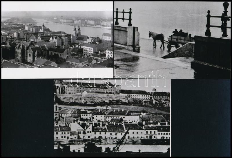 cca 1870 és 1945 között készült budapesti felvételek, 5 db mai nagyítás (az épülő első Erzsébet híd, a budai várhegy oldala, felrobbantott Lánchíd, stb.), 10x15 cm