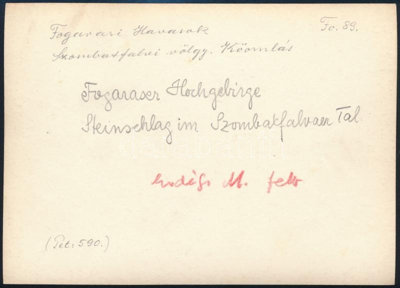 Leírás: cca 1910 Fogarasi-havasok, Erdélyi Mór felvétele, hátulján feliratozva, 11,5×16 cm / Fagaras Mountains, with notes on its back, 11,5×16 cm
