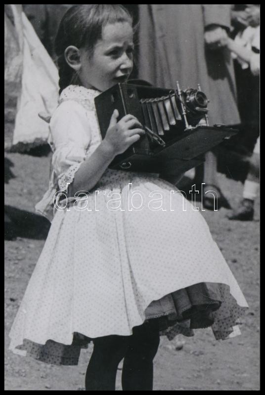 cca 1928 Balogh Rudolf (1879-1944) fényképész, fotóriporter legfiatalabb ,,tanítványa", egy falufényképezés során adta a gyermek kezébe egyik kameráját, 1 db mai nagyítás, 15x10 cm