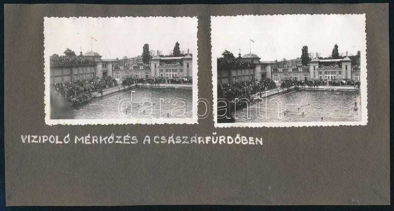 Leírás: cca 1930-1940 Vízilabda mérkőzés a császárfürdőben, 2 db albumlapra ragasztott fotó, 6×9 cm