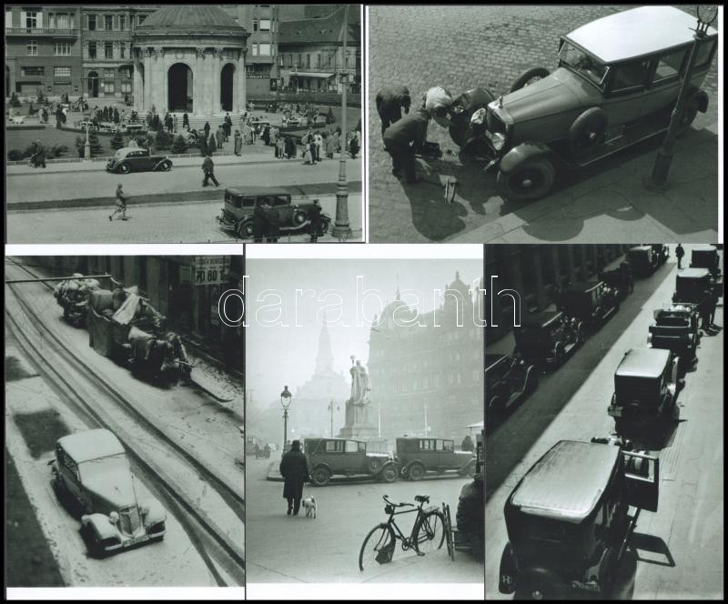 Leírás: cca 1933/2022 Budapesti automobilok, Kinszki Imre budapesti fotóművész felvételei, 5 db mai nagyítás, jelzés nélkül, 15x10 cm