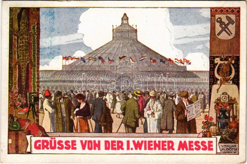 Leírás: Wien, Vienna, Bécs; Grüsse von der I. Wiener Messe / International Trade Fair in Vienna. Verlag A. Göth. Art Nouveau