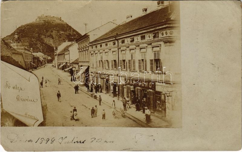 1898 (Vorläufer) Déva, Fő utca, vár, Pap Jenő, Lengyel Dániel és Schul... https://www.darabanth.com/hu/427-Gyorsarveres/427.0/Kepeslapok/Erdely~1000005/1898-Vorlaufer-Deva-Fo-utca-var-Pap-Jeno-Lengyel-Daniel-es-Schuleri-Fritz-uzlete-mai~II2726098