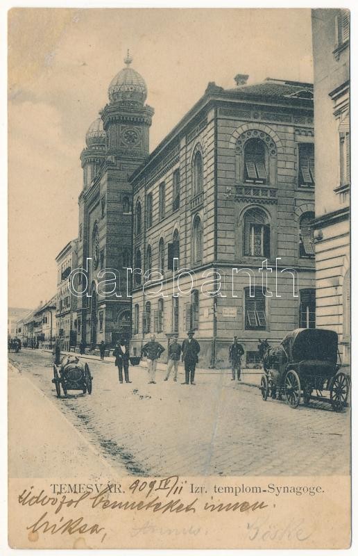 1909 Temesvár, Timisoara; Izraelita templom, zsinagóga. Moravetz és We... https://www.darabanth.com/hu/427-Gyorsarveres/427.0/Kepeslapok/Erdely~1000005/1909-Temesvar-Timisoara-Izraelita-templom-zsinagoga-Moravetz-es-Weisz-kiadasa-Synagoge-s~II2731460