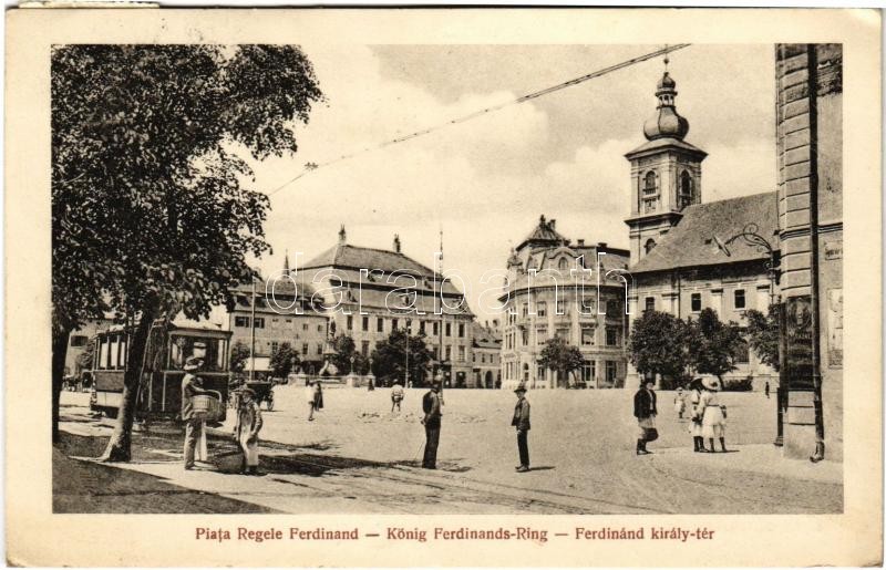 1930 Nagyszeben, Hermannstadt, Sibiu; Piata Regele Ferdinand / König Ferdinands-Ring / Ferdinánd király tér, villamos. Krafft & Drotleff kiadása / street view, tram (EK)