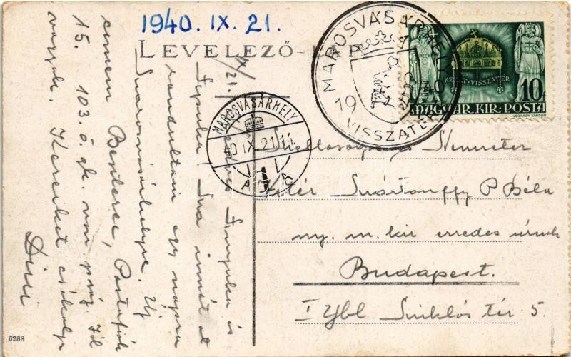 Leírás: 1940 Marosvásárhely, Targu Mures; Katonai alreáliskola / military school + "1940 Marosvásárhely visszatért" So. Stpl. (EK)