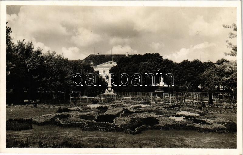 1941 Sepsiszentgyörgy, Sfantu Gheorghe; park, irredenta virágágyás Nagymagyarországgal és megyékkel. Paszjár Sándor fényképész mester / park with irredenta flower bed